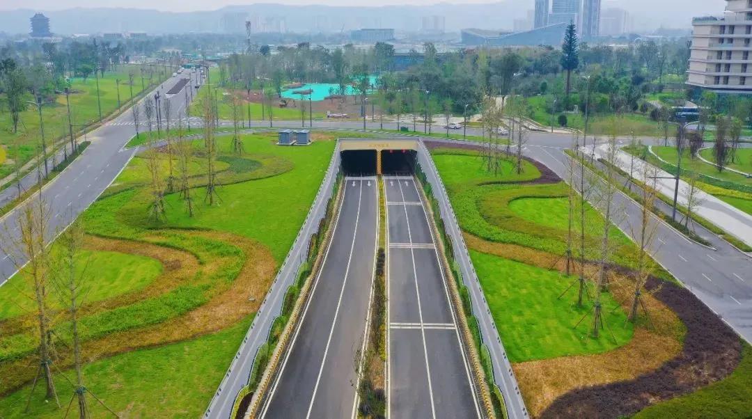 东安湖隧道位于成都市世界大运公园内,从东安湖底穿越,是成都市第一条湖底隧道,全长1775m,双向四车道,设计车速60km/h,建设内容涵盖道路、结构、给排水、消防、建筑、交通等十余个专业,隧道的建成为跨湖交通提供了便利,极大提升大运主场馆东安湖片区的基础设施配套水平。