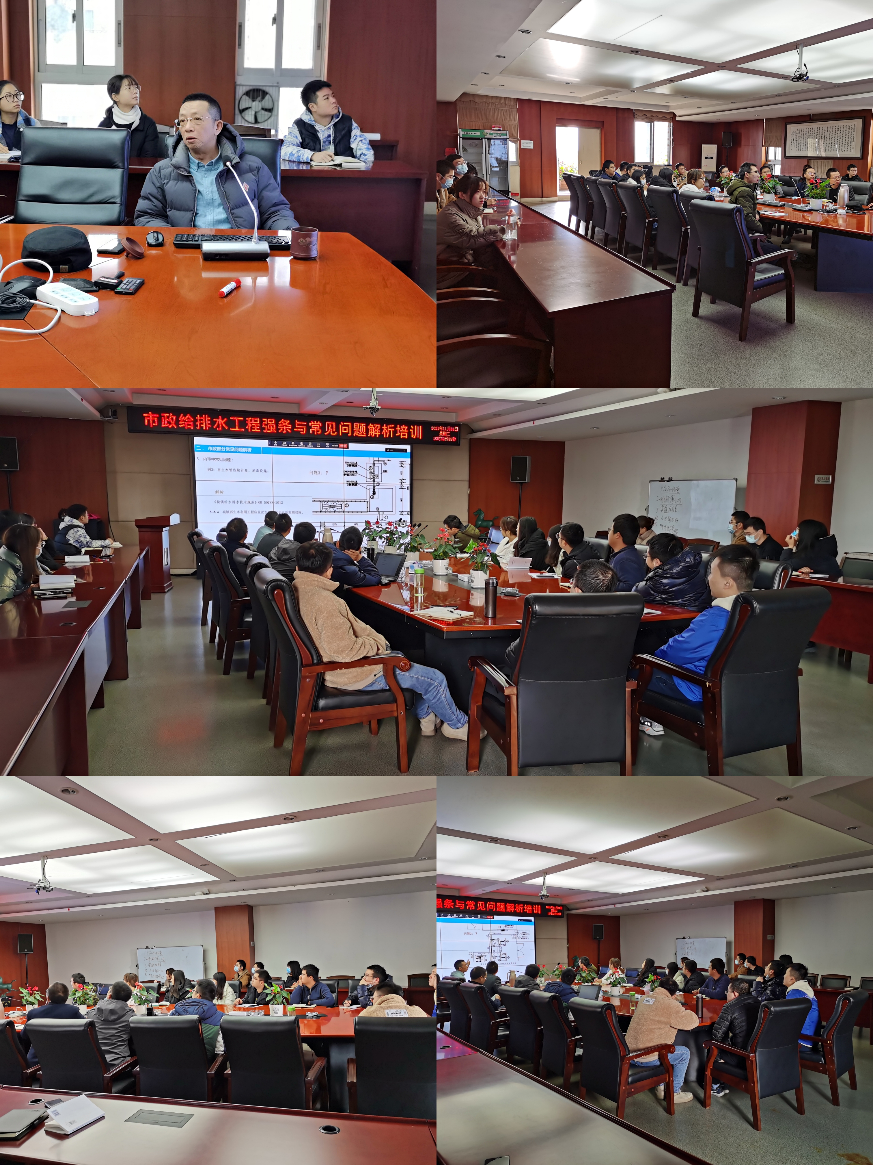 本次培训交流的主讲人为公司给排水专业总工、教授级高工张明杰。在培训会上,张总主要从强条汇编情况、市政给排水工程违反强条常见问题解析、新规范及其变化等三方面进行了讲解;重点从规范的适用范围、规范采用的缺失或遗漏、内审中常见问题等三大类问题对市政给排水工程设计中出现的违反强条的常见问题,结合相关案例进行了解析,并通过提问的方式引导大家积极思考,增强培训的互动性。宣贯结束后,参训人员还就目前项目设计中遇到的相关强条问题进行了互动交流。参训人员表示,培训针对性强、内容丰富、接地气、受益匪浅、收获很大。