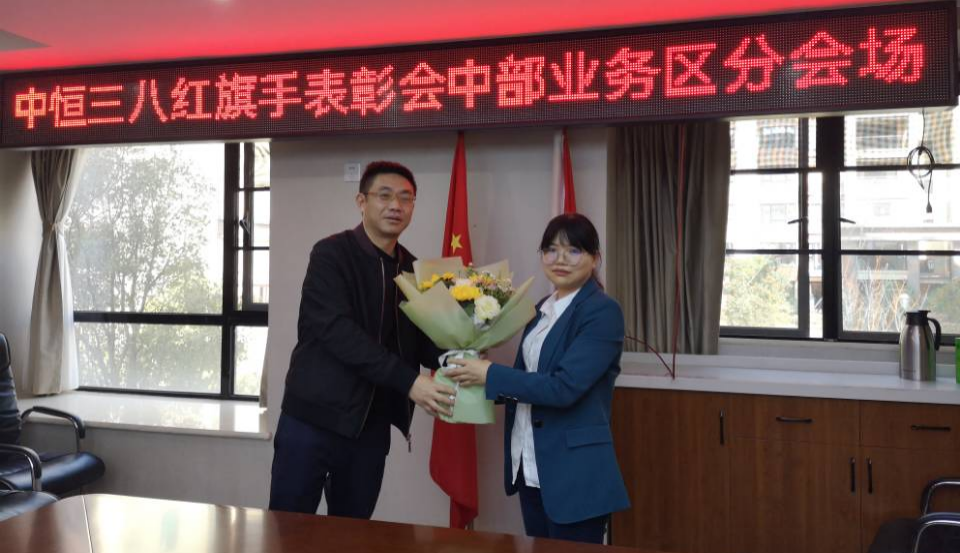 最后,邹总对各位获奖职工献上了鲜花和颁发荣誉证书,并进行了合影留念。同时,在中部业务区分会场,业务区董事长也对集团级“三八红旗手”王雪燕进行了颁奖。本次表彰大会,在大家的欢声笑语中结束。
